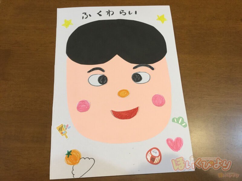 お正月の製作。厚紙で「福笑い」の作り方ほいくびより。