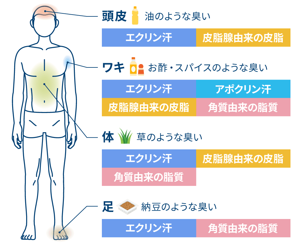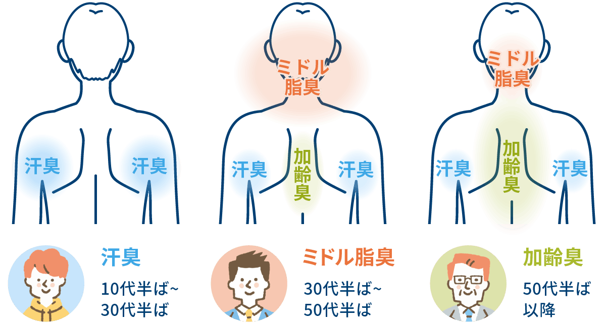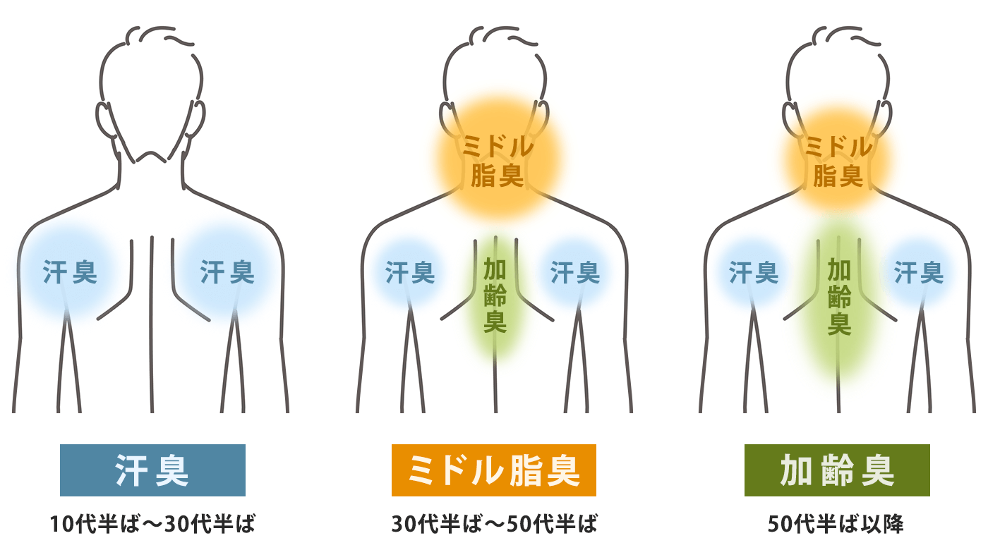 年代別 男性の体臭の3大原因と対策方法をわかりやすく解説ボデオ360 BoDEO 公式通販シックスセンスラボ。