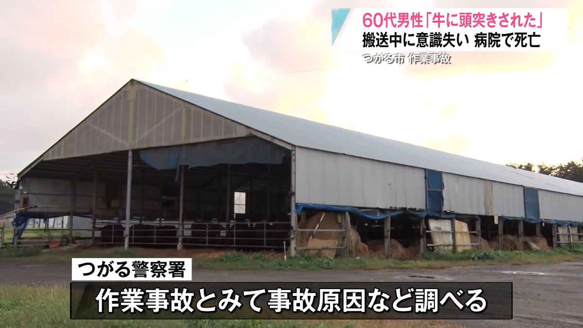 牛に頭突きされた」血を流して牛舎で倒れていた男性 容態急変し搬送後に死亡確認 作業事故か 青森県つがる市 2025年10月2日掲載 日テレNEWSNNN。