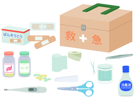 救急箱と中身のイラストのセット_2245546172 毎月1点無料 フリー のストックフォト イメージマート。
