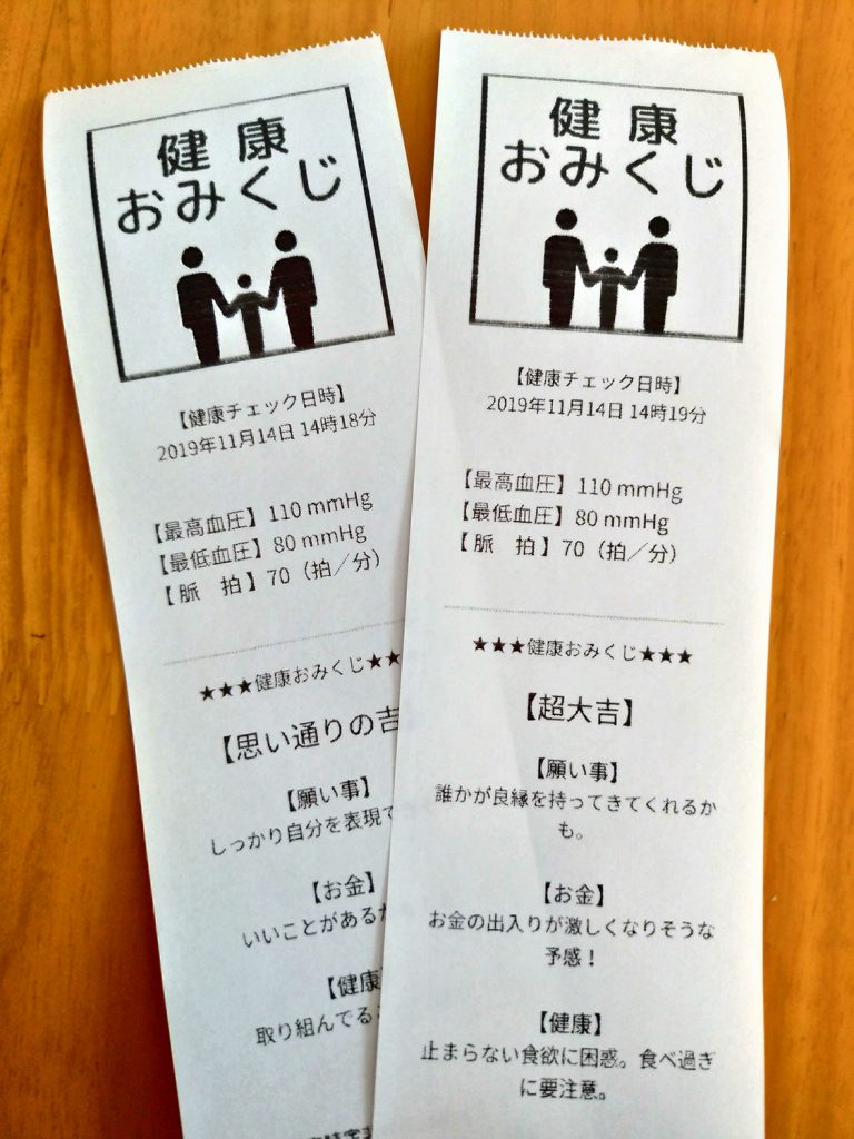 血圧測定で引ける「健康おみくじ」をポケサポが独自開発しました。