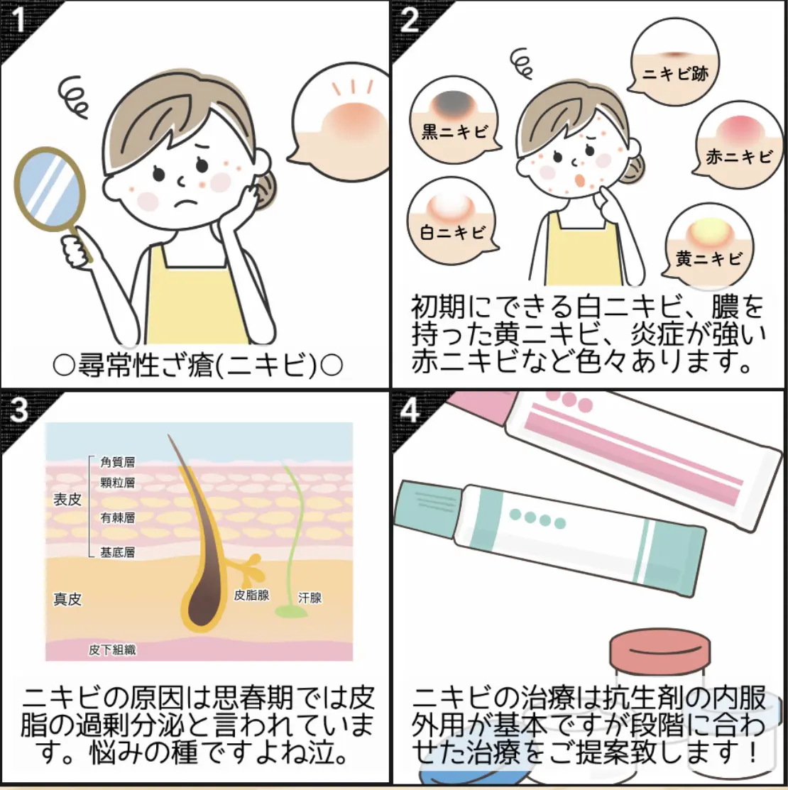 ニキビについて町野皮ふ科坂戸市にっさい花みず木の皮膚科。