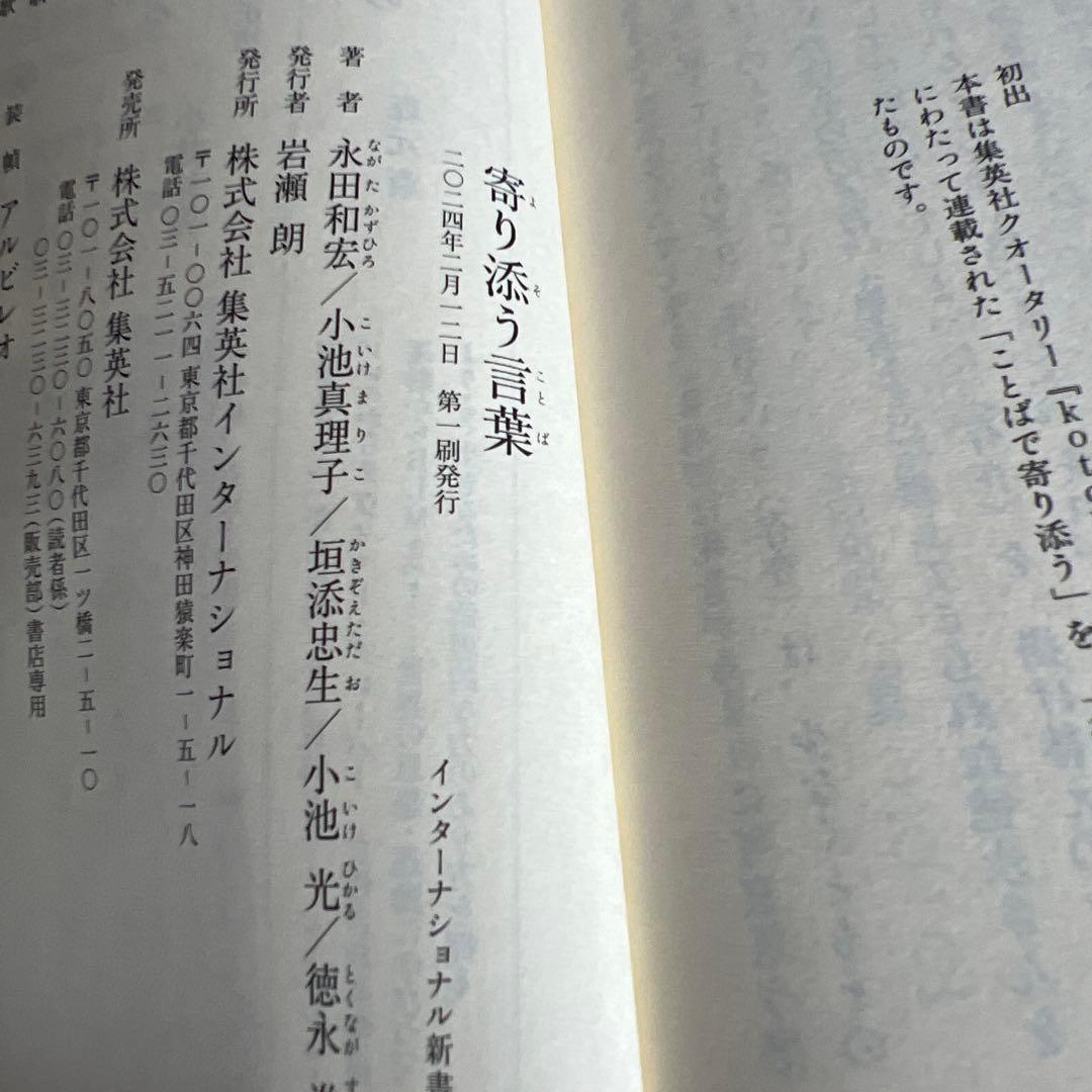 寄り添う言葉 永田 和宏 小池 真理子 垣添 忠生 小池 光 徳永 進集英社 ― SHUEISHA ―。