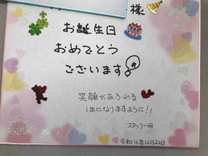 いこ和神戸大倉山兵庫県神戸市中央区分散型サービス付き高齢者向け住宅『 スタッフお手製 お誕生日メッセージカード 』♪ブログ株式会社エメラルドの郷。