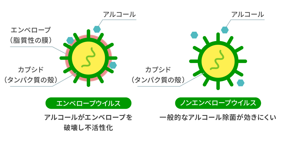 アルコール除菌では効きにくいウイルス・菌がある!? 次亜塩素酸ナトリウム除菌との併用のススメ除菌ラボ全薬工業株式会社。