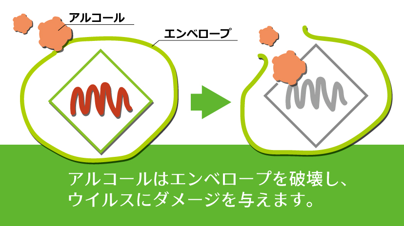 アルコール系除菌剤での拭き取り」を行った結果、 インフルエンザウイルスが99.99%以上死滅!!ジョンソン株式会社。