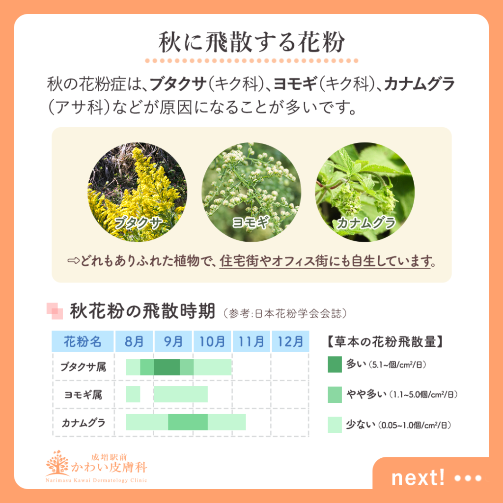 花粉症は、春だけじゃない!~秋の花粉症対策 - 板橋区成増駅前かわい皮膚科。