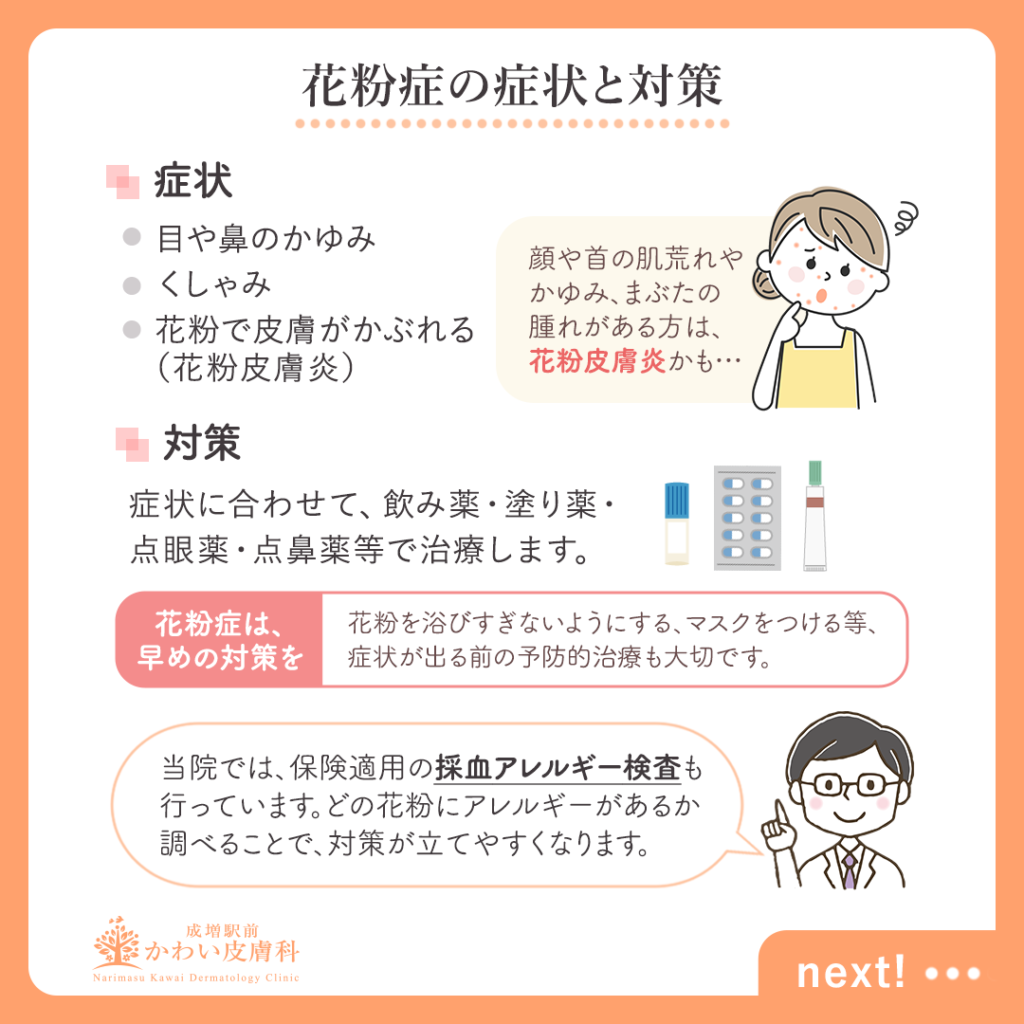 花粉症・花粉皮膚炎・舌下免疫療法 - 板橋区成増駅前かわい皮膚科。
