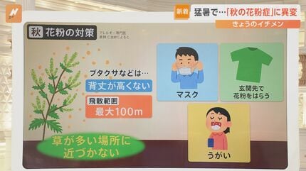 秋の花粉症 ブタクサ、ヨモギ、イネ科 油断大敵第一の対策は「草むらに近づくな」 関西テレビ・newsランナー。