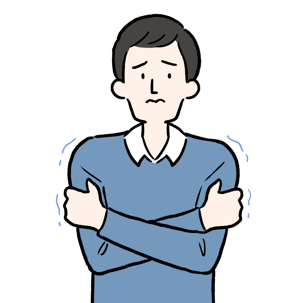 悪寒・寒がる男性患者のイラスト│看護師イラスト・フリー素材集 無料 │看護師ライフをもっとステキに ナースプラス。