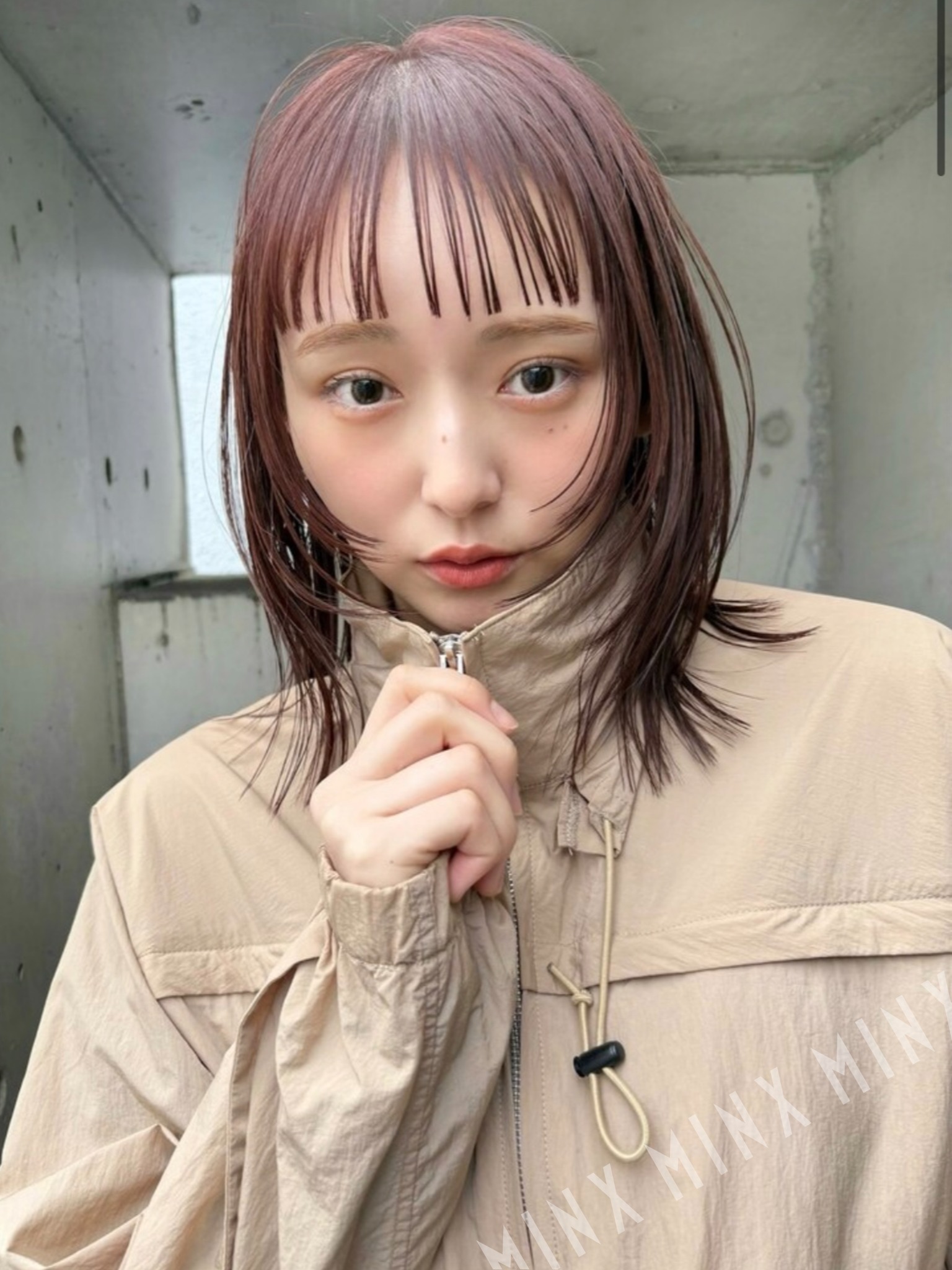 外ハネミディアム×小顔カットフェイスレイヤー表参道銀座原宿の美容院MINX。