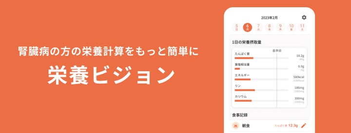 腎臓病の方向け栄養計算アプリ「栄養ビジョン」リリース 血液検査記録アプリと連携し、栄養摂取量と血液検査結果の比較機能を提供株式会社トーチス株式会社トーチスのプレスリリース。