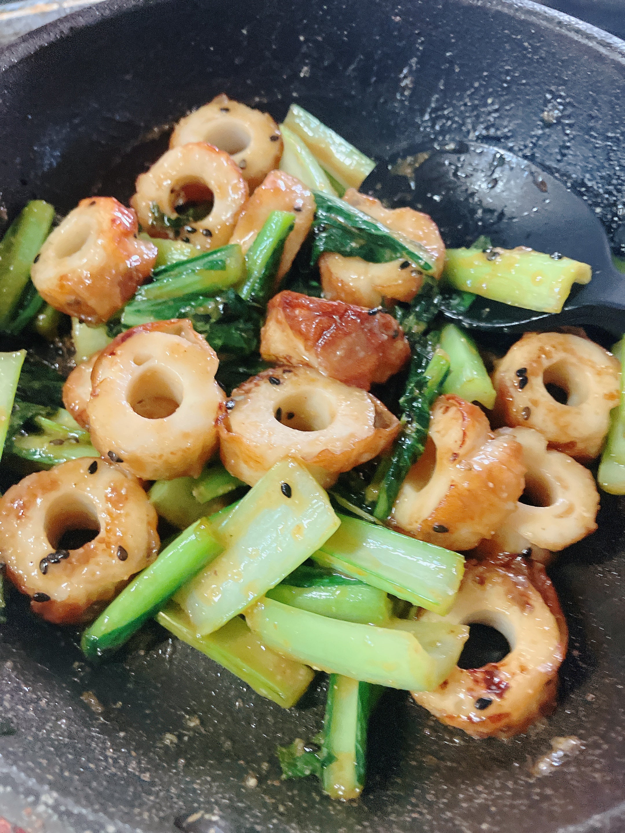 高タンパクで低脂肪!ちくわと小松菜のごまみそ炒め農産物直売所 めぐみの郷。