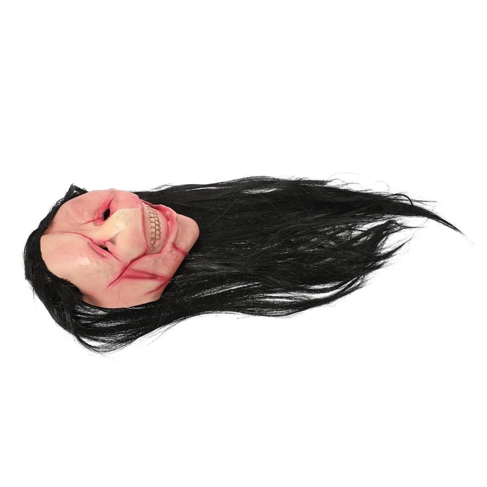 AmazonWhnbuij Momoo 恐ろしいマスク - 不気味なフェイスマスク ロングヘア フルフェイスマスクハロウィンコスチューム背骨が冷えるヘッドギア 怖いカバー ホラーデーモンマスク コスプレアクセサリー ハロウィンイベント装飾用キッズコスチュームアクセサリー。