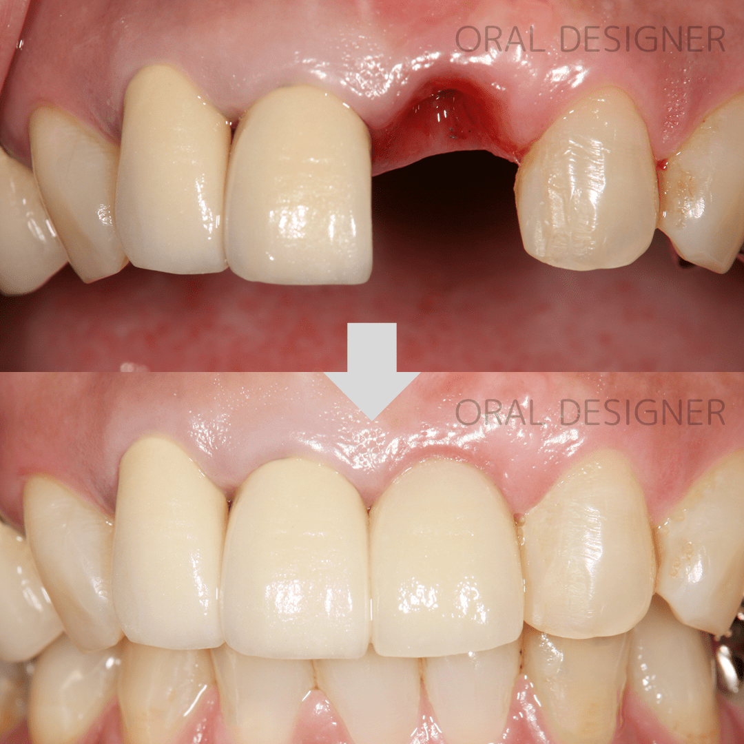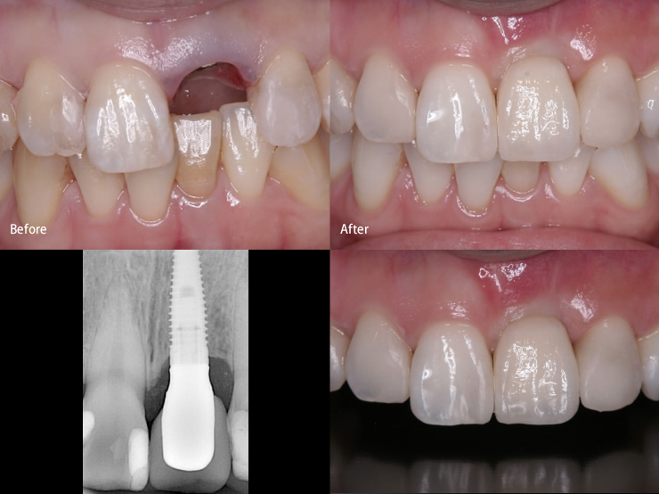 前歯を1本失った場合のインプラント治療京都北山の歯医者・南部 なんぶ 歯科医院インプラント・歯周病治療など。