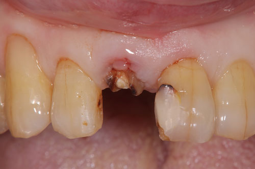 保存不可能な前歯を抜歯後にインプラントで治療した症例世田谷区千歳烏山の歯医者。