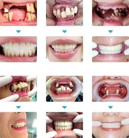 前歯をほとんど失った場合のインプラント症例インプラントネット。