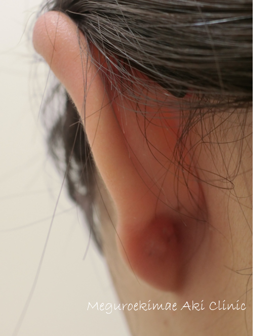 耳にできた粉瘤も取れます!目黒駅前アキクリニック。