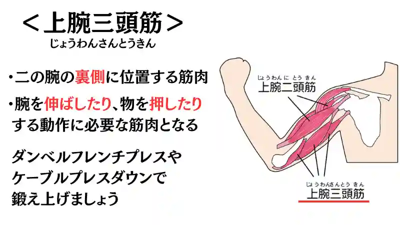 ダンベルフレンチプレスが効果のある筋肉部位 種類とやり方 負荷回数設定・動画 里海WEB科学館 水族館・動物園・昆虫館+栄養・スポーツ科学 デジタル図鑑。