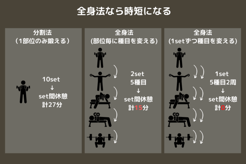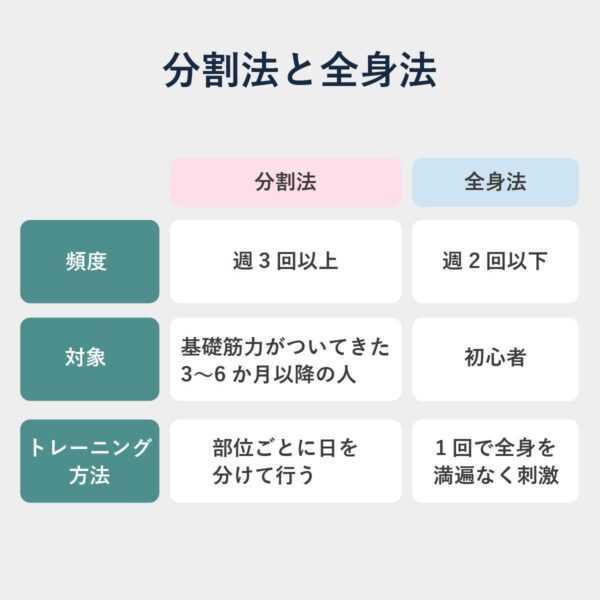 筋トレ トレーニングは全身を一度にやった方がいいのか、部位ごとに分けてやった方がいいのか解説します。