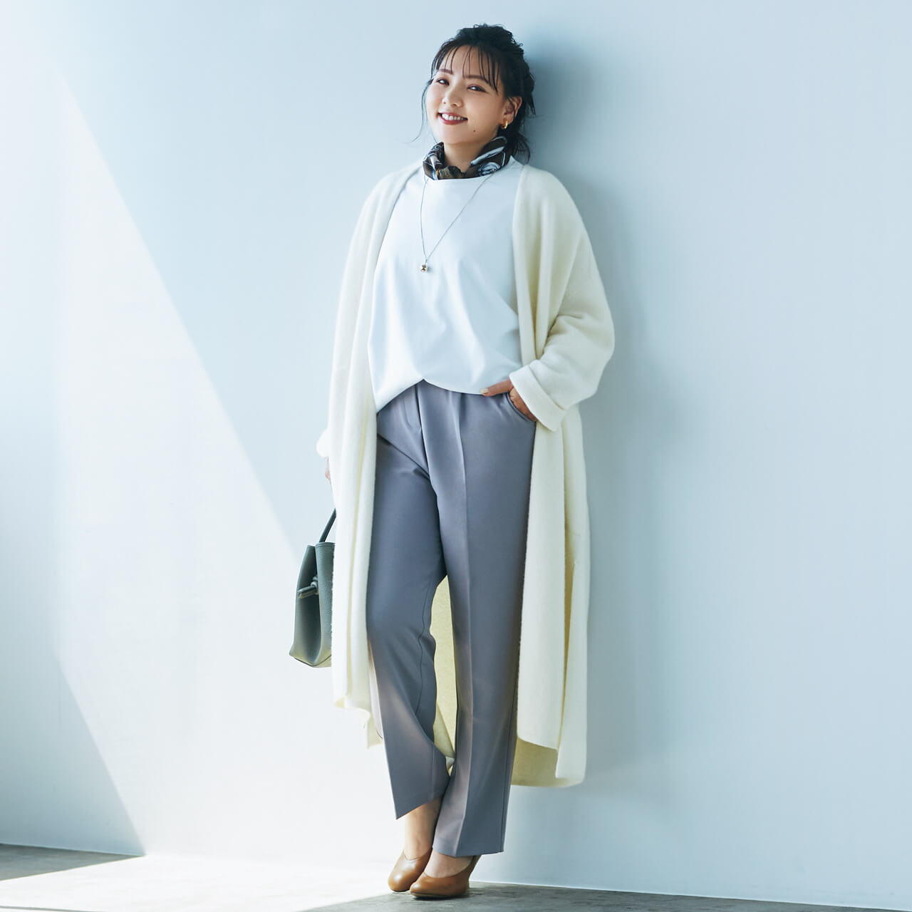 野呂佳代さんが着こなす、マシュマロ体型のための「レイヤードコーデ術」4選。