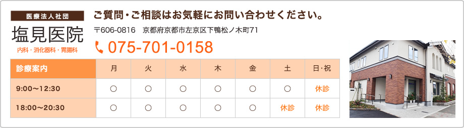 京都市 左京区 内科 消化器科 胃腸科 医療法人社団 塩見医院。