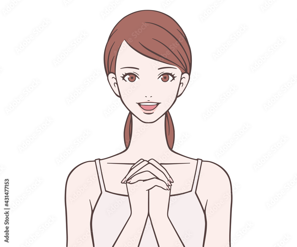 両手を胸の前に合わせて微笑む女性のイラスト素材232486408 毎月1点無料 フリー のストックフォト イメージマート。