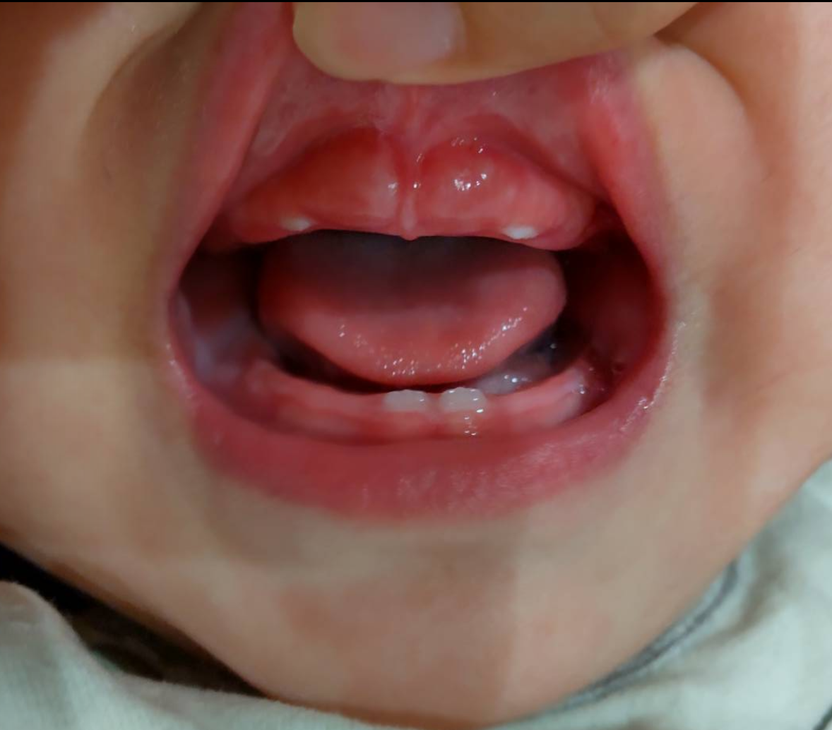 上の前歯も生えてきました。2023.09.11 7カ月の赤ちゃん広島市南区の自由診療専門歯科・三好デンタルオフィス。