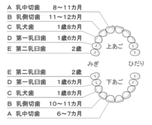 歯の生える時期流山市東初石・おおたかの森の歯医者ここなつ歯科。