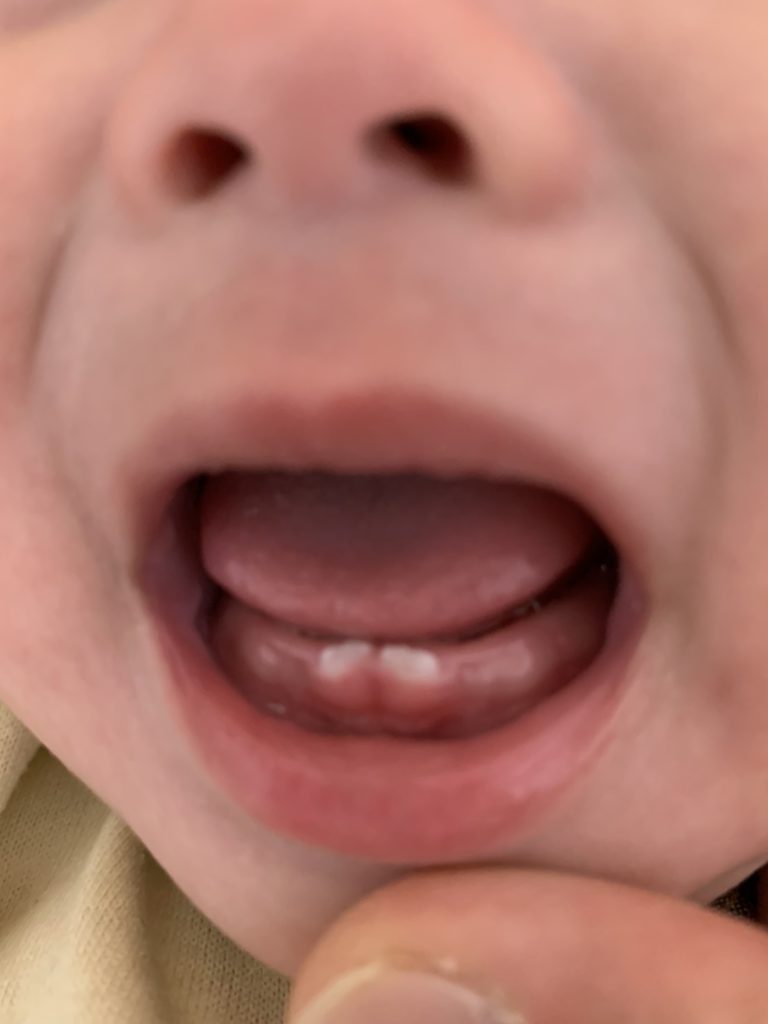 赤ちゃんの初めての歯が生えてきましたTikTok。