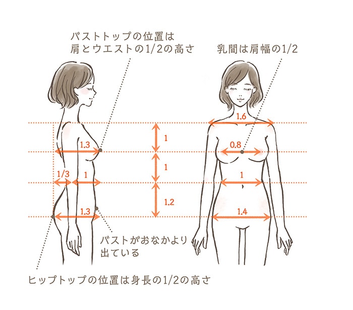 胸の正しい位置とは?胸の位置が低い原因や高くする方法を解説。