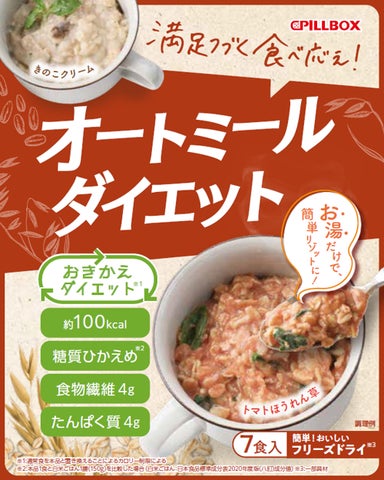 お湯だけ” で、美味しく手軽に置き換えダイエット!満足続く食べ応えの即席オートミールリゾット「オートミールダイエット」2023年8月7日 月 より全国ドラッグストア等で新発売!ピルボックスジャパン株式会社のプレスリリース。