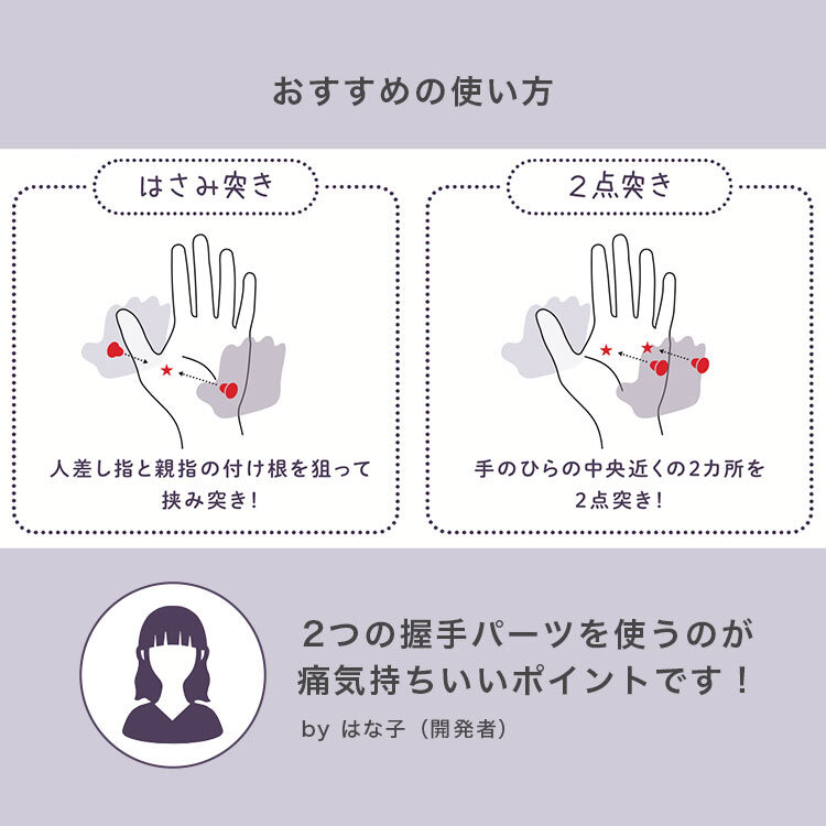 ゴリラの握手 ドウシシャ 手 疲れ ツボ押し マッサージ機 つぼ ハンドマッサージャー ハンドケア グッズ 電動 むくみケア 片手 コード式 疲労回復血行 冷え性 改善 刺激 ほぐす リラックス 手軽 簡単 自宅 コンパクト プレゼント ピンク グレー パープル -hauhau。