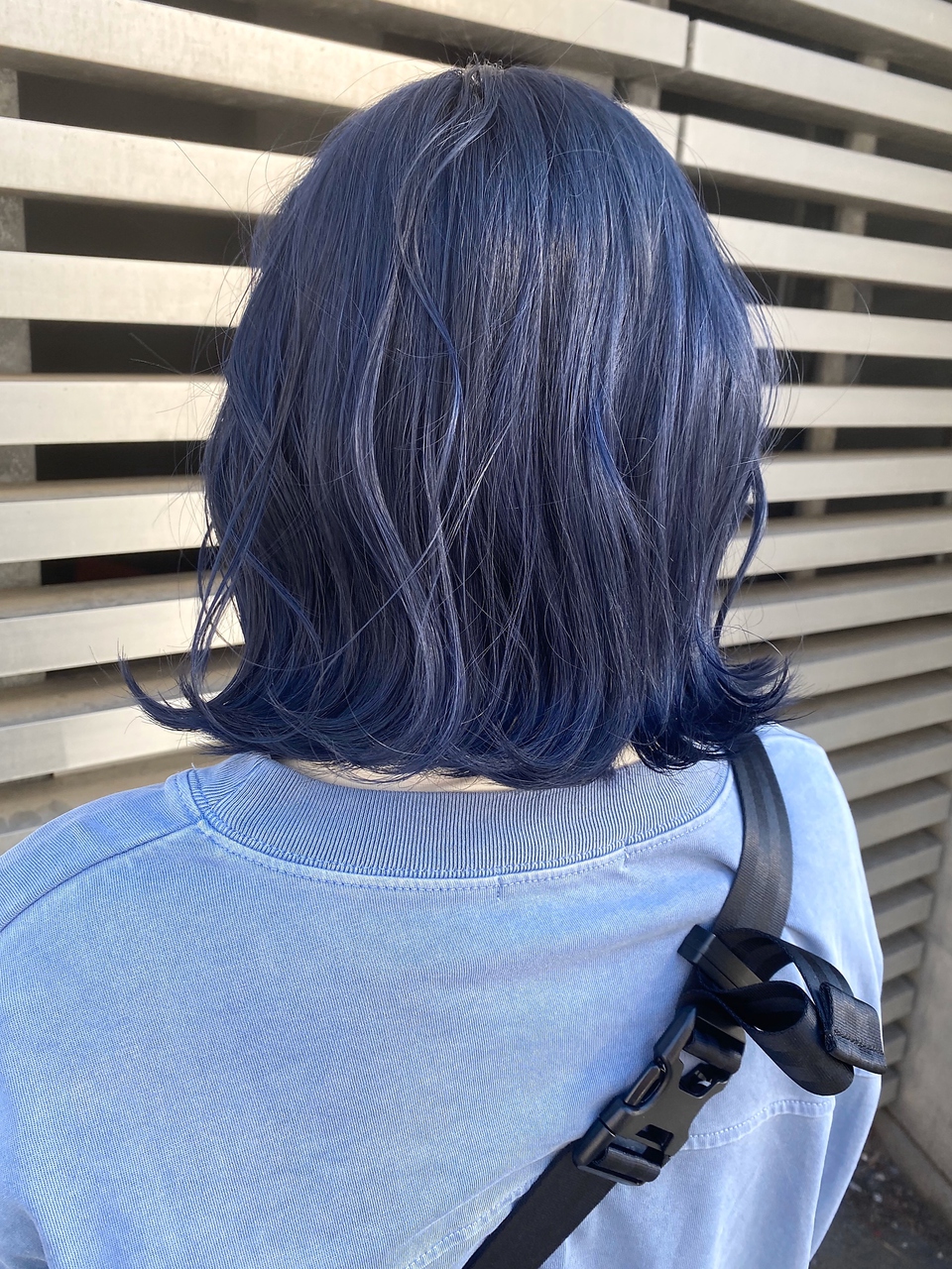 裾カラー💙. 毛先ブリーチ・ネイビー&水色 ¥16500 カット ¥5500 ブルーカラーネイビーヘアネイビーカラー青髪水色ハイトーンカラーケアブリーチ裾カラーグラデーションカラーボブボブヘア。