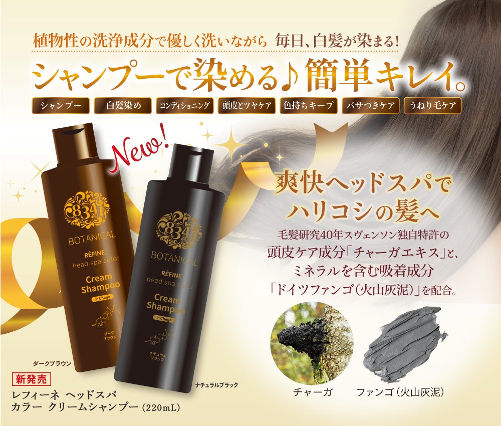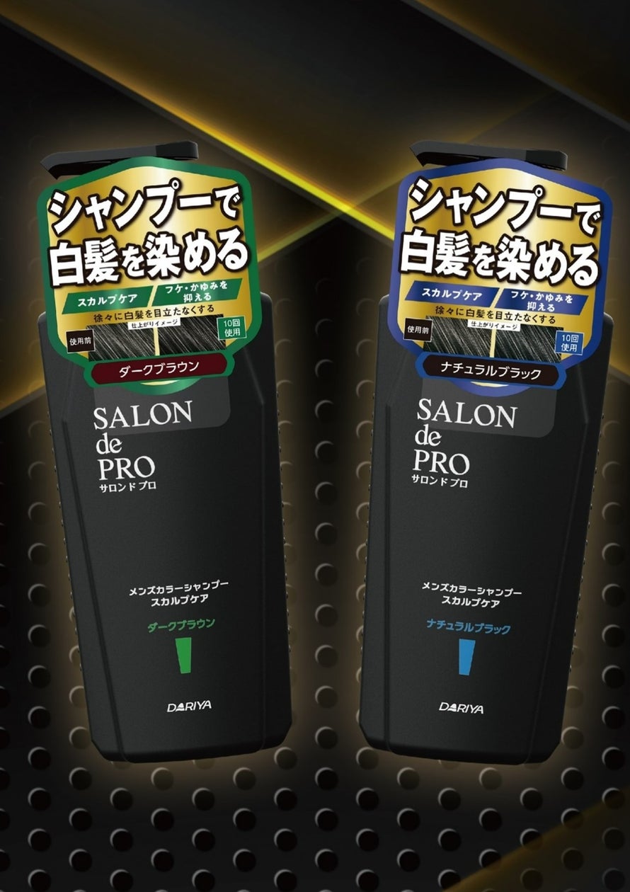 白髪が染まるスカルプケアシャンプー サロン ド プロ メンズカラーシャンプースカルプケア 白髪用 <ダークブラウン><ナチュラルブラック> 2023年3月1日 水新発売株式会社ダリヤのプレスリリース。