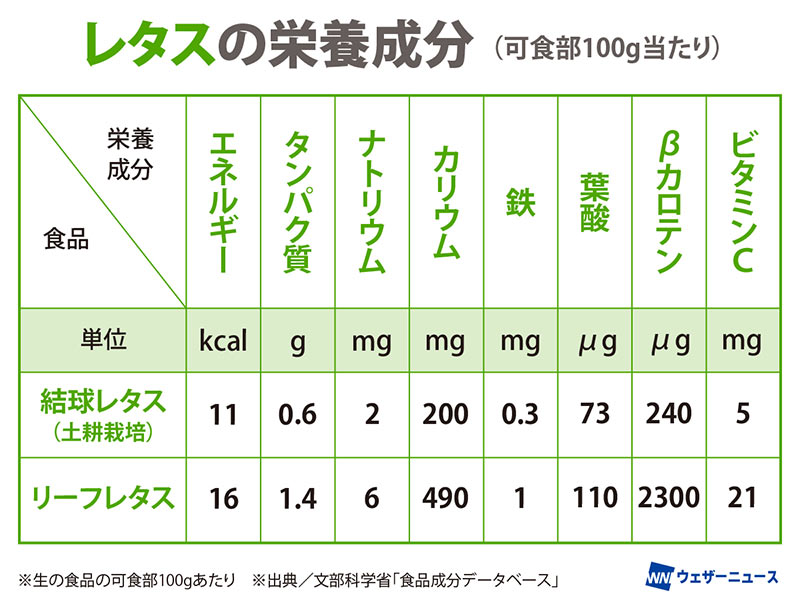 レタスとサニーレタス、栄養豊富なのはどっち? 比較して分かった意外な結果 - ウェザーニュース。