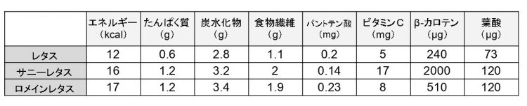 サニーレタスの栄養成分表 食品番号:6315 食品成分表。