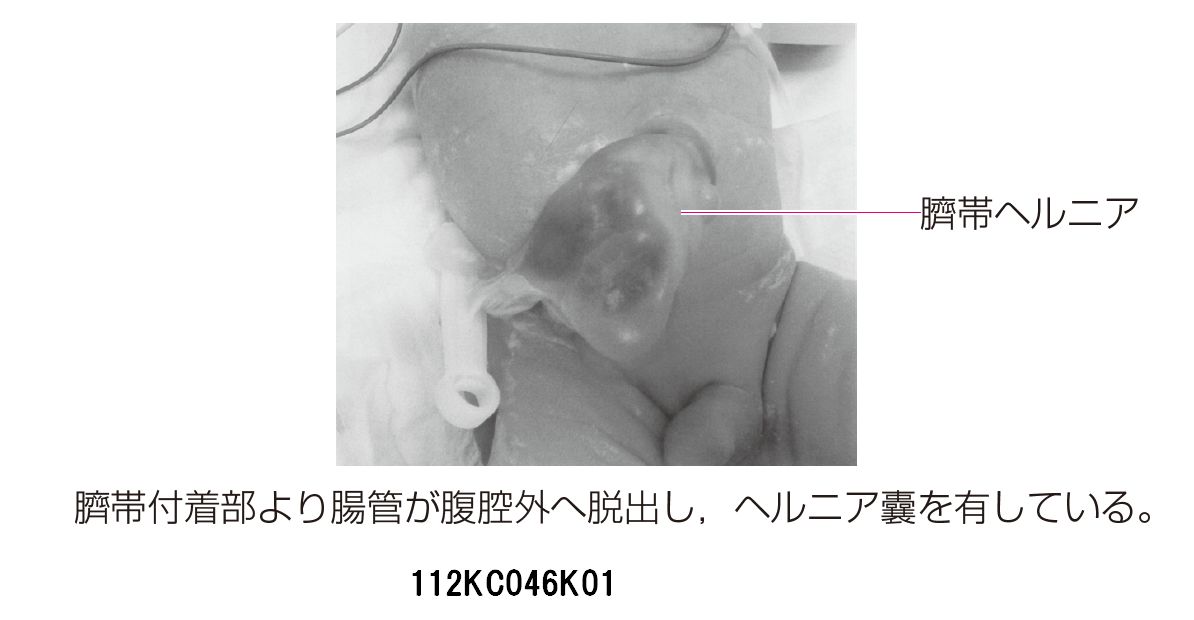 112C46臍ヘルニア・臍帯ヘルニア, 染色体異常症 国試テコプラ。