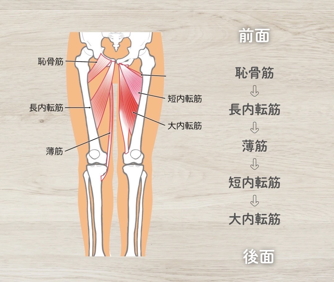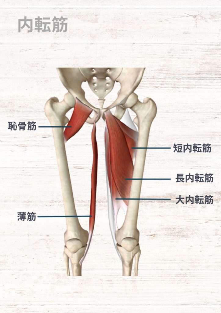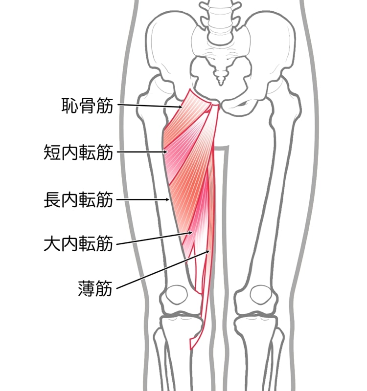 股関節内転筋群 内ももの筋肉 ストレッチと筋トレのためのイラスト図解剖学。