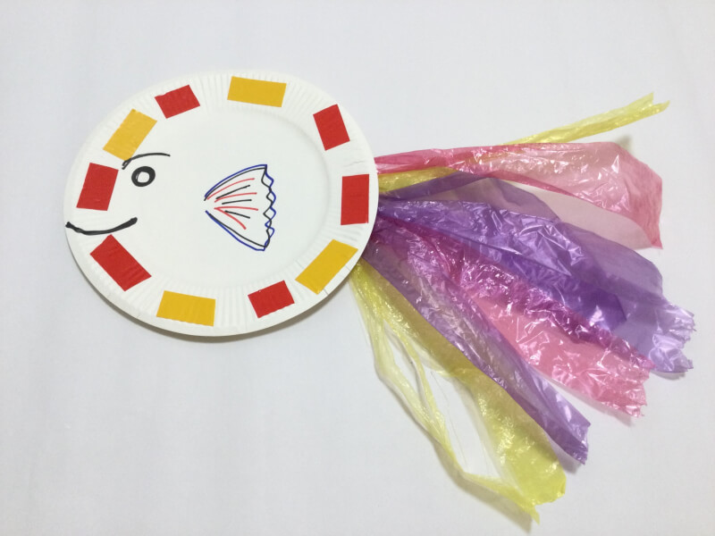 水遊び製作 紙皿で作る、ゆらゆら揺れるお魚さんの作り方ほいくびより。