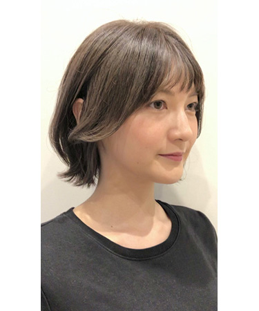 面長さん・丸顔さんに!ベージュカラー&長め前髪のひし形ショートボブ最旬ヘアカタログ美的.com。