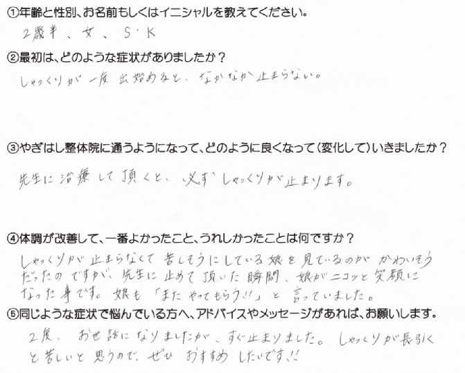 横浜鶴見の整体 しゃっくりの整体横浜鶴見の『本当に治る』と評判の整体院。