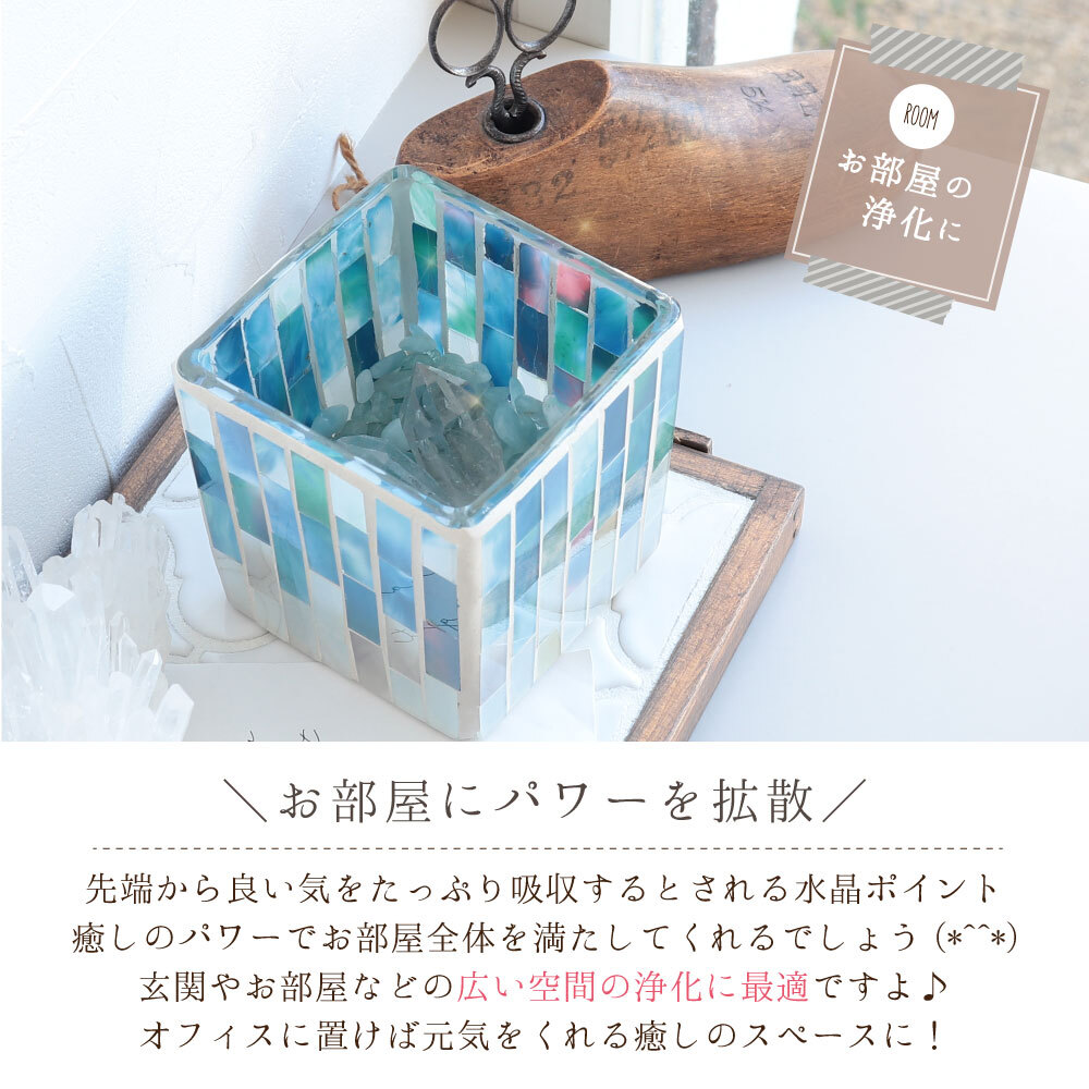 モザイクガラスポット 浄化セット 選べるさざれ ~200g ブラジル産 ミナスジェライス州 美しい水晶 パワーストーン 水晶原石 六角柱 浄化皿高品質 厄除け 原石 ガラス キャニスター 浄化用 玄関用 部屋用 置物 厄払い 母の日 花以外 プレゼント 贈り物 33歳 厄年 女性。