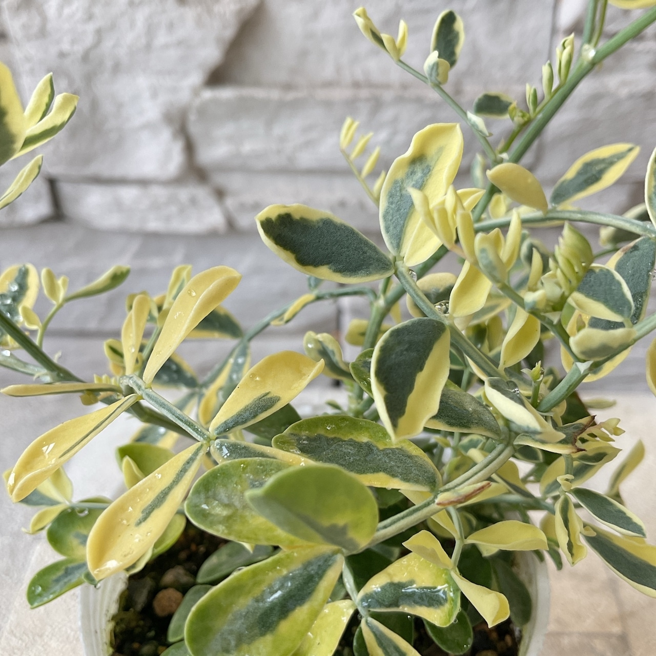 おはようございます!カーメン君です コロニラ バレンティナ バリエガータ といいます黄色い元気お花と何と言ってもこの斑入りの葉っぱが明るく元気出ますよね マメ科の植物になるので葉っぱもお花も言われてみると豆っぽい・。 結構育てやすく環境に合えば難しく。