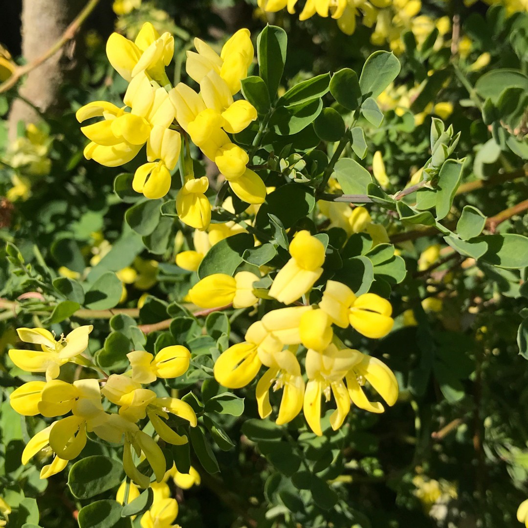 花も葉も可愛い💕常緑低木🌳 ♢"コロニラ・バレンティナ・バリエガータ"  おはようございます🌞いつもインスタをご覧頂きありがとうございます😊 コロニラバリエガータは半つる性のように伸びていき、ふんわりとした鮮やかな黄色のお花を毎年春にたくさん咲かせます。