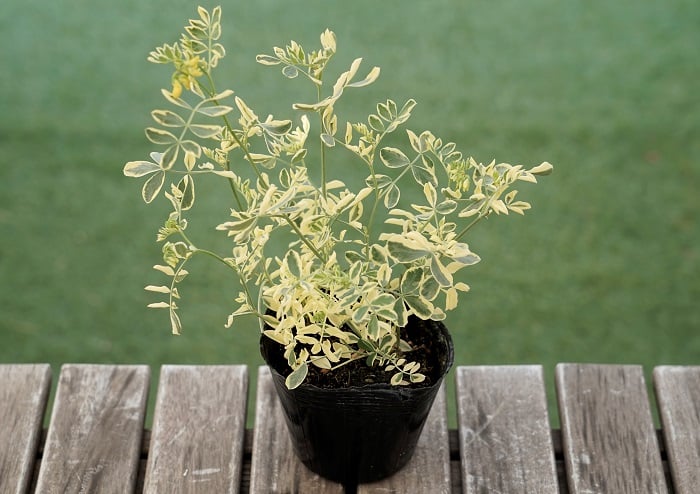 コロニラ バレンティナの育て方:小さな鉢植えで、美しい葉と芳香の小さな黄色の花を楽しむメダカの大工。