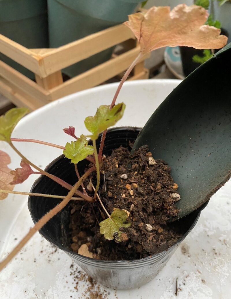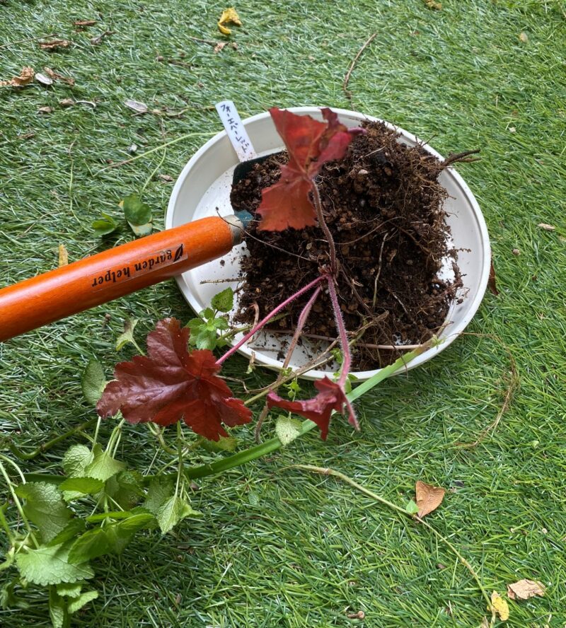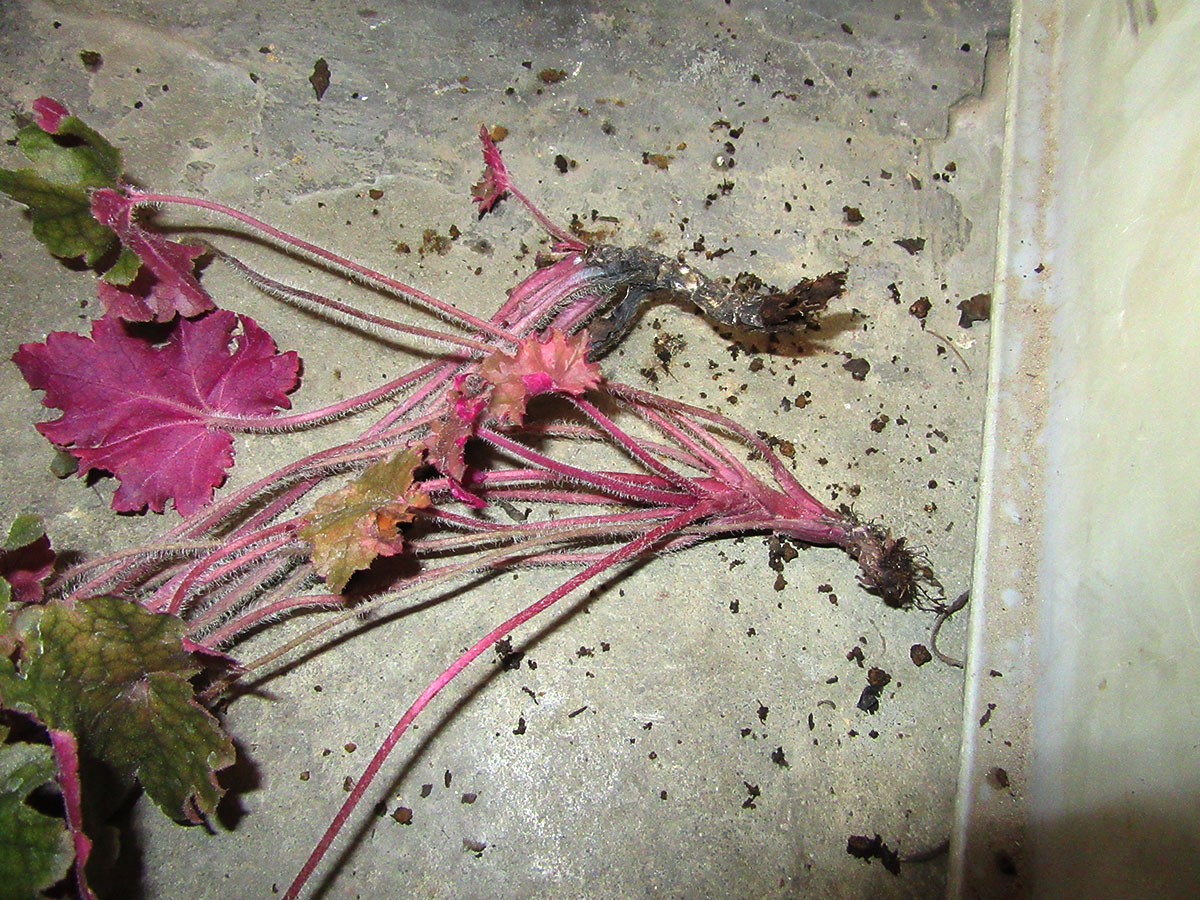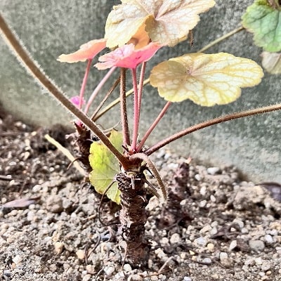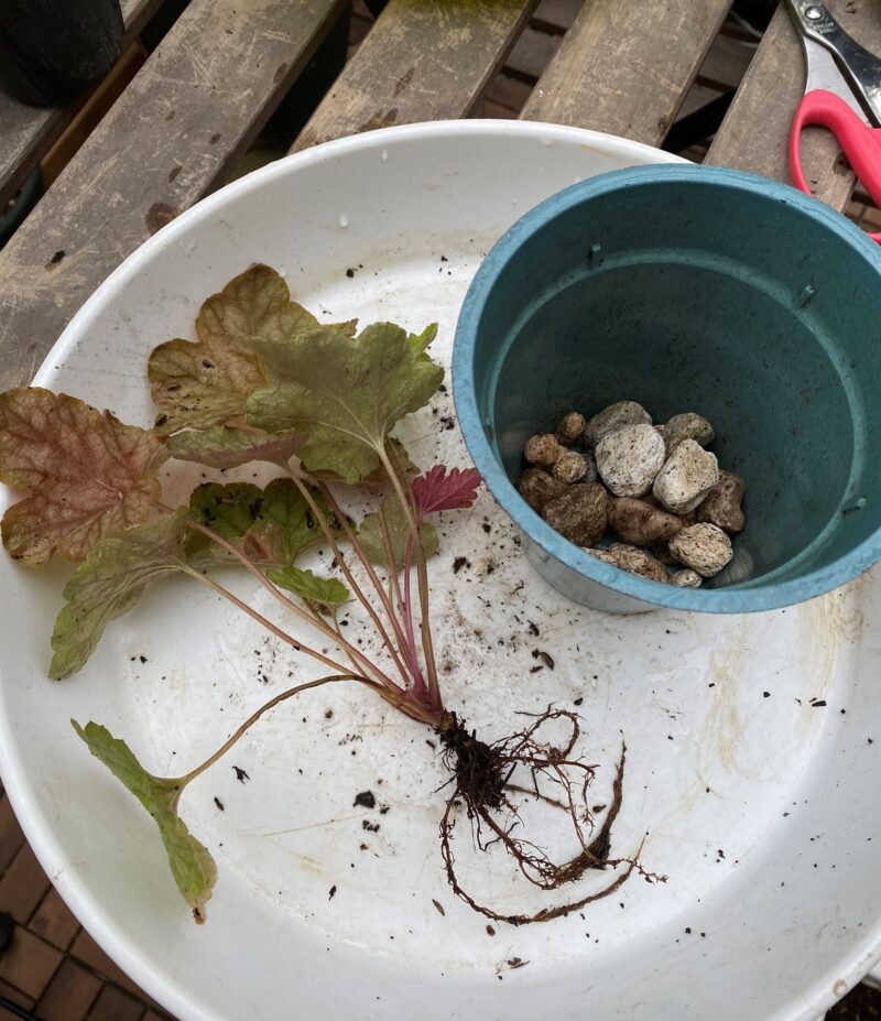枯れそうなヒューケレラ・クッパーカスケード 掘り上げて、根腐れから復活させるレトニワ。
