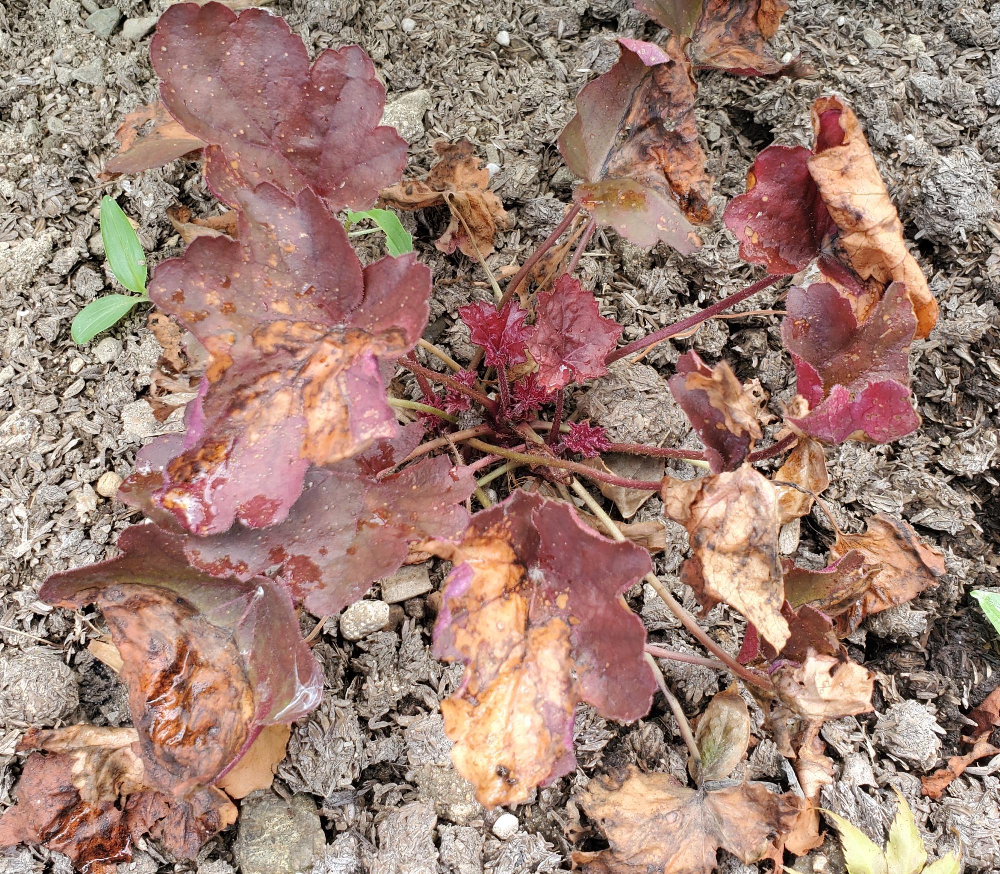 葉焼けでしょうか?ヒューケラがどんどん萎れていきます、、 園芸相談Q&Aみんなの趣味の園芸。