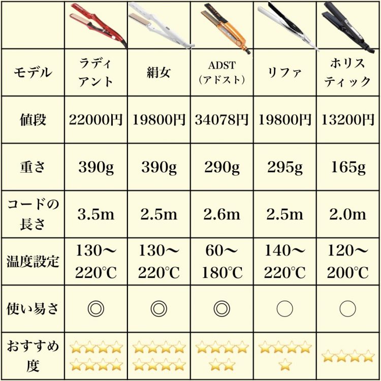 口コミなしで比較!高級ヘアアイロンTOP5 2023年 美容師おすすめランキング評価 森。