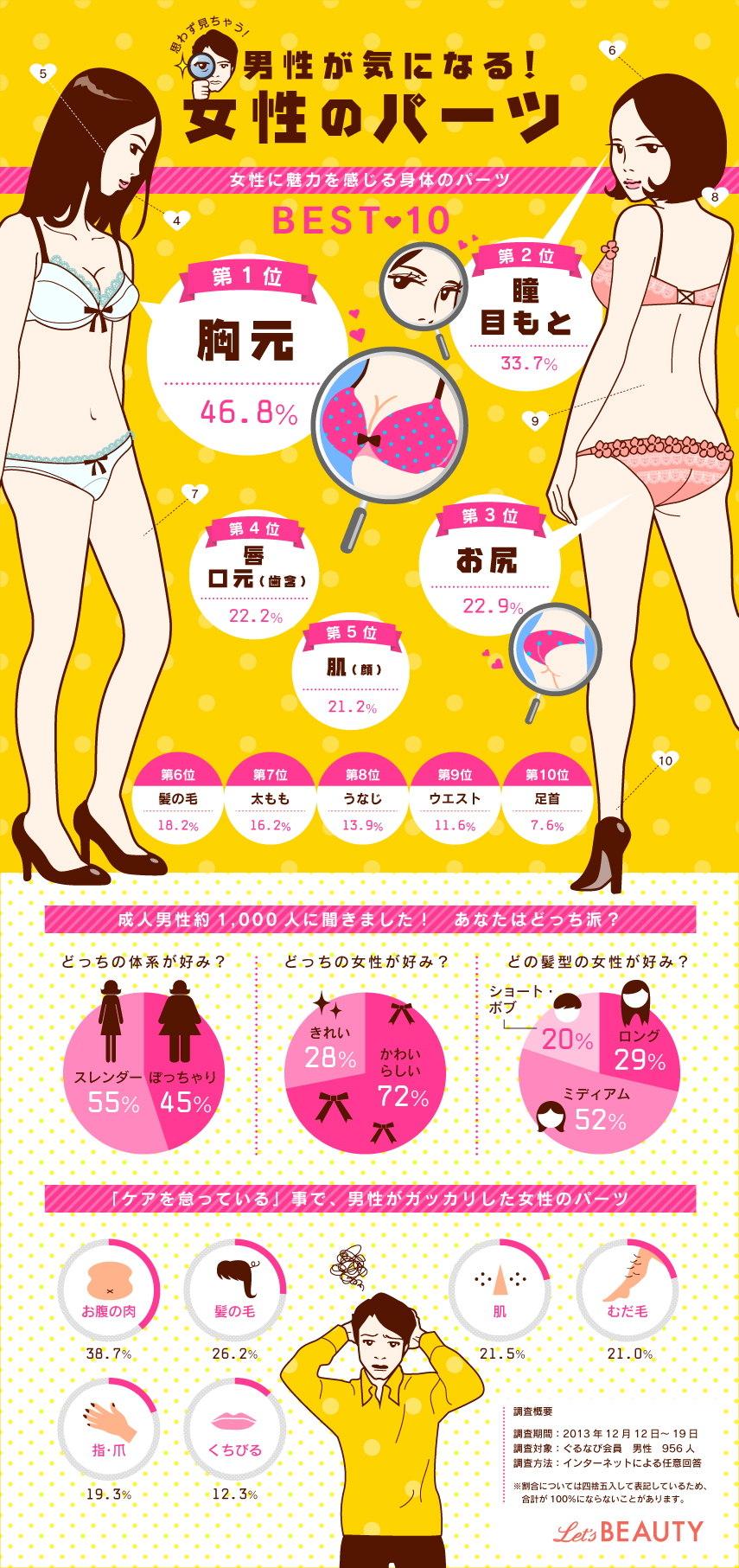 男が気になる女性の体BEST3。やっぱり男はイヤらしいインフォグラフィック。